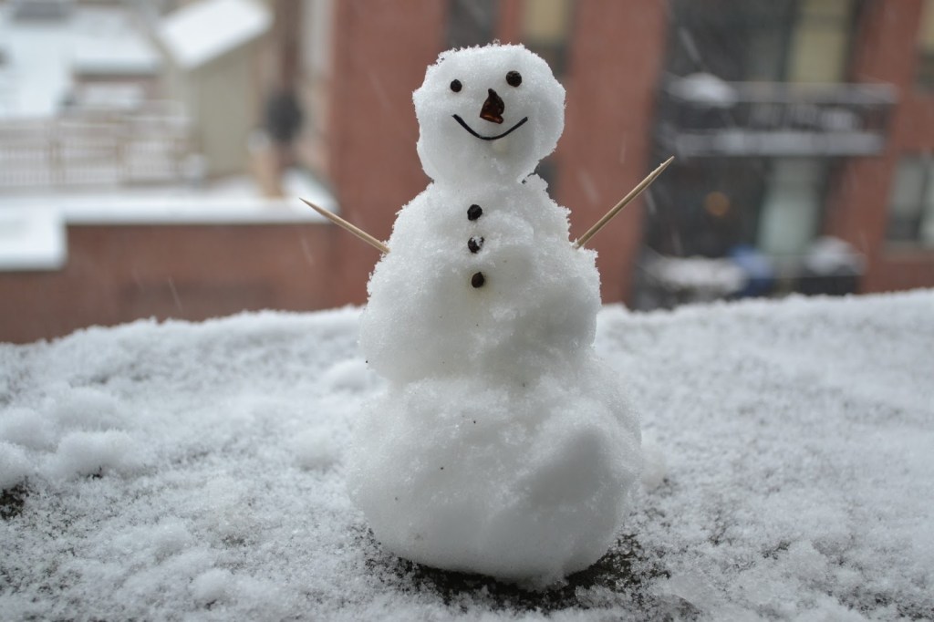 Words in a text I receive from Ellie… as the caption to a photo of a lopsided little snowman built on a patio table in a quad at her school. Clearly making the most of the snowy weather this month that makes its way to college campuses as well–suspending things, pulling them from indoor, online lives out to the wild and stilled wonder of winter. Take that, you nasty pandemic. Little hapless fellow, lumpy middle, sloping shoulders, sporting an outback boonie hat and two twigs for arms. Even his pose is one of resignation. NO hugging no gathering no touching no sharing nosingingnolaughingnobreathingnobeing…no….no…no…. Here he is, little snowy smiling yes. Or at least a maybe. Two button eyes and a carrot nose and–Hey! Where’s his mask?! Other shared photos from these snow days show them–campus fun all normal-like. Frosty goes CDC. This little guy looks at me from his centerpiece perch–small, but valiant, and her words whisper the resignation and quiet resolve that blankets this period of time in pandemic life for our students, a plea more than a declaration… It is small, but still good.